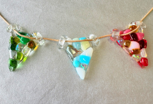 12月は色とりどりのガラスを使ってオリジナルのガーランド(三角旗の飾り)をお作りいただけます。