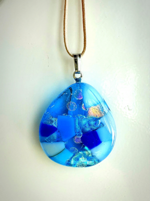 2月はハート型のガラスの上にお好きな形にカットした色ガラスをならべてオリジナルアクセサリーをお作りいただけます。