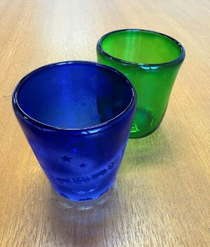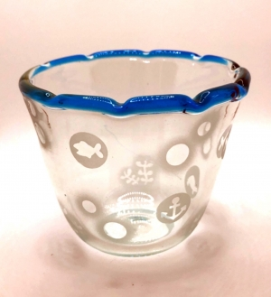 ガラスの表面に高圧で砂を吹きつけて削り、模様を描く技法です。コップやペーパーウェイトなどのガラス素材にデザインシールや文字の切り抜きを貼り、高圧で砂を吹き付けることで表面が研磨され、模様を描くことができます。シールをはがせる年齢のお子様から大人までお楽しみいただけます。