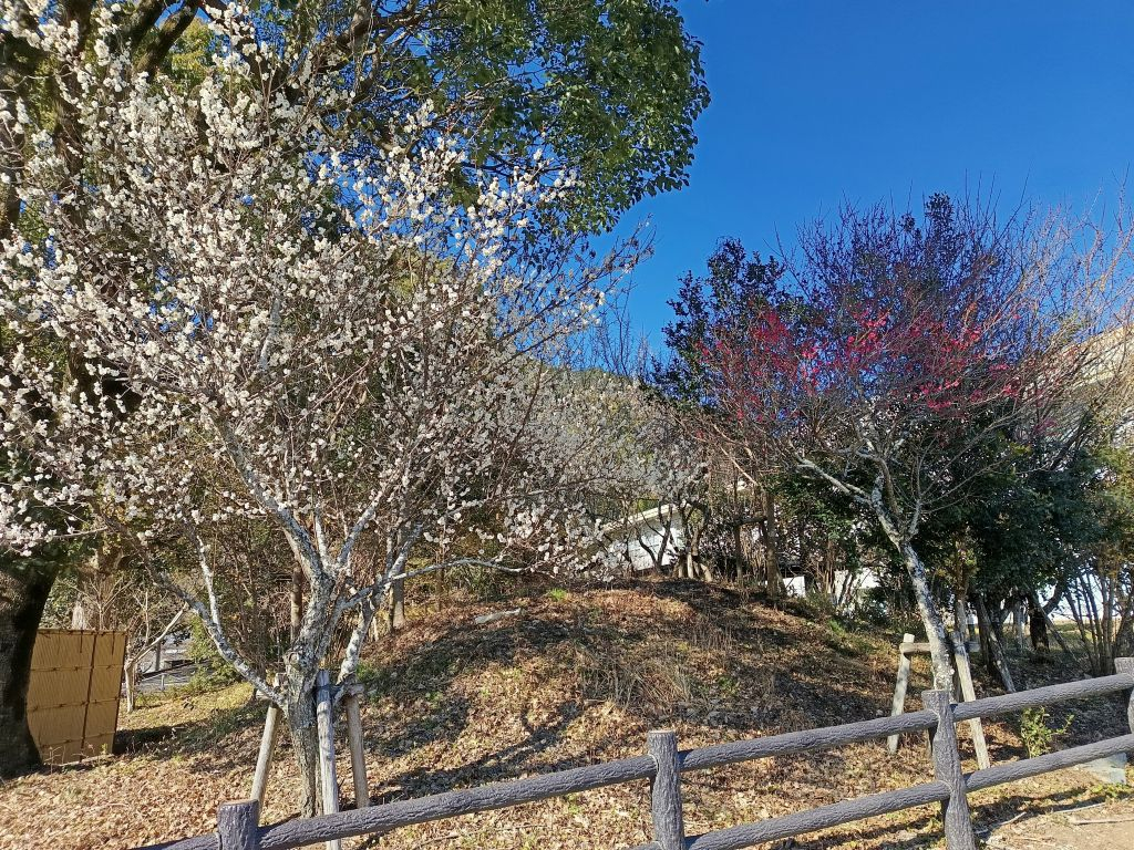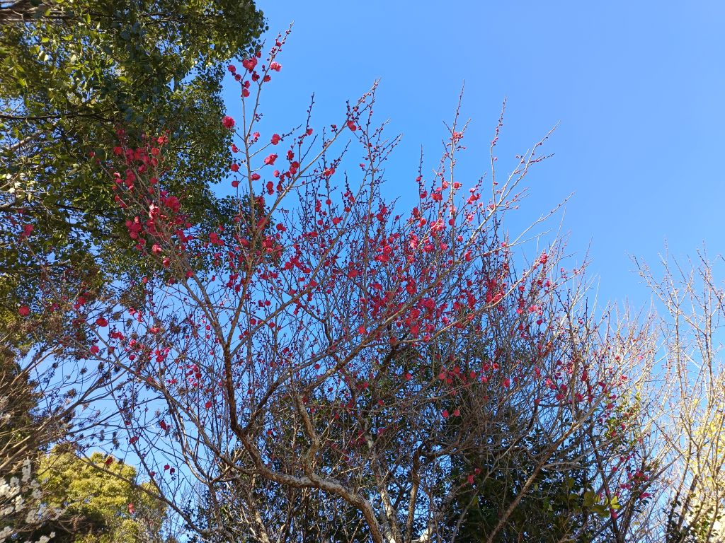 紅白の梅の花が咲き揃う予定です。昨年よりも遅れるかな。