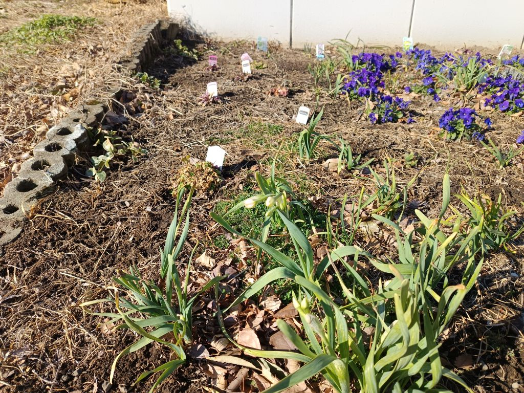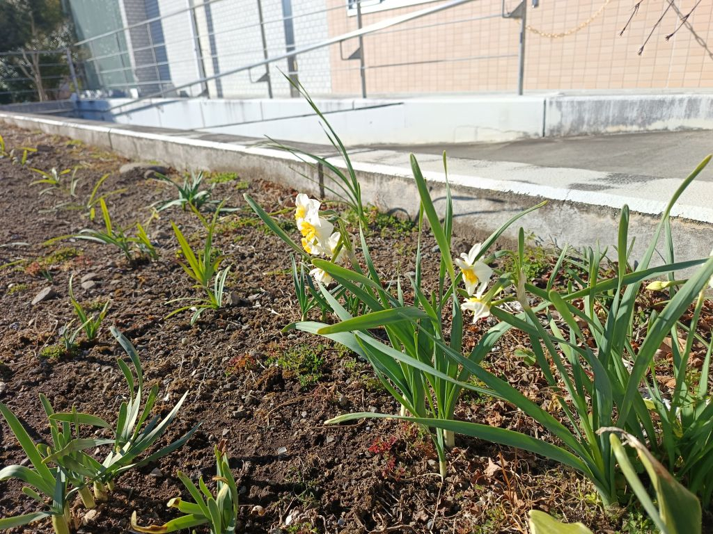 昨年暮れの花壇整備の前から植えてあった水仙も咲きそうです。