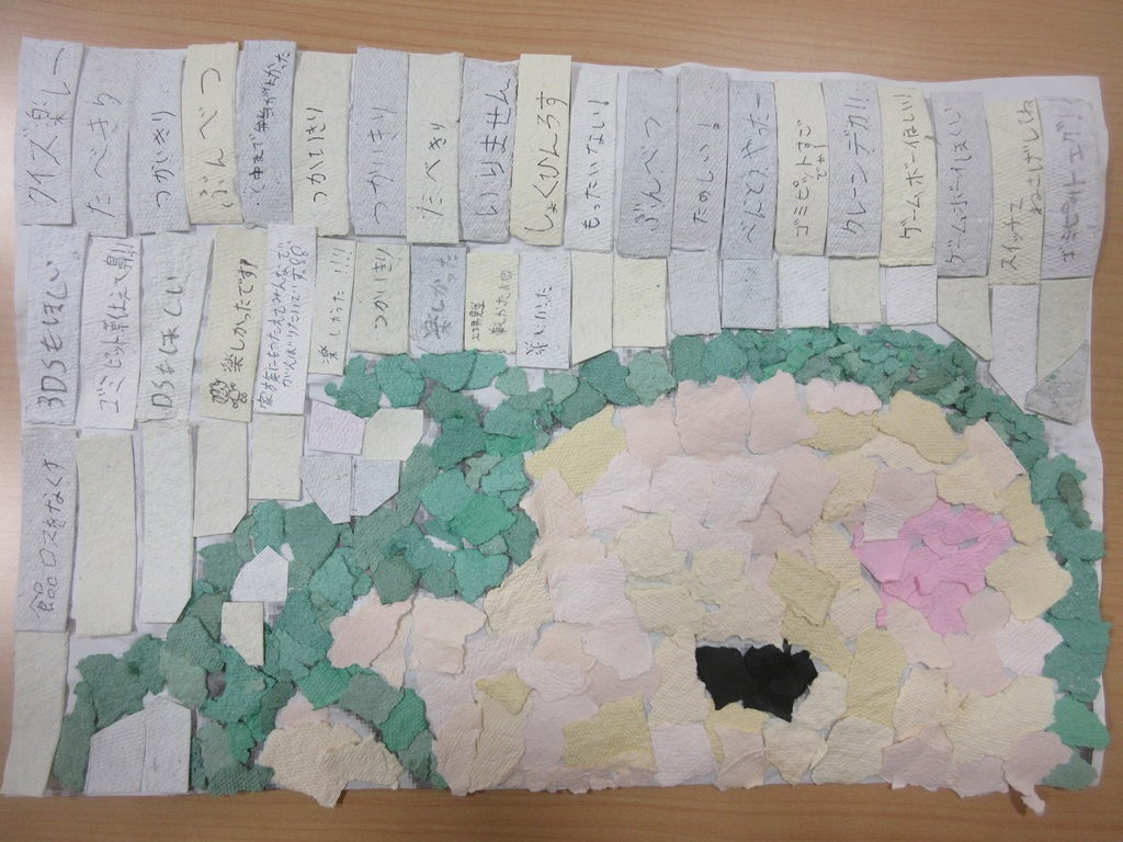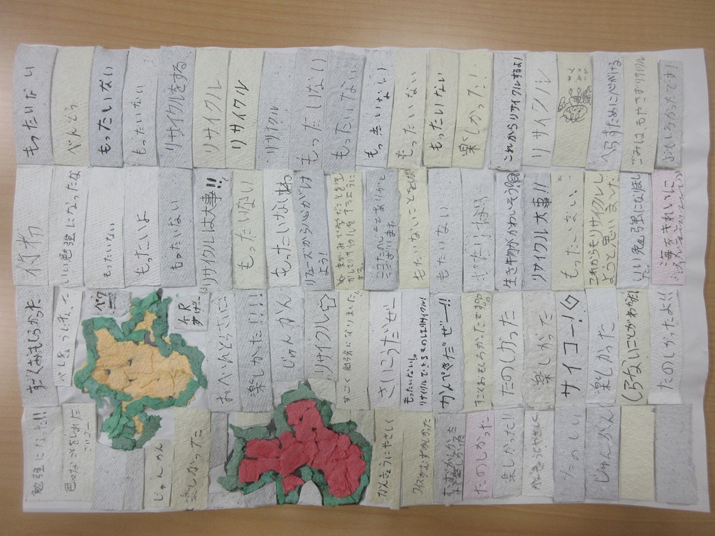 沼上清掃工場と沼上資源循環学習プラザには、毎年たくさんの小学生が見学に訪れます。そこで、令和7年度は「アート」制作を企画しました。不用となった紙から作った”再生紙”を利用して、アート作品を制作します。複数の小学校に協力してもらう【リレーアート】です。完成すると???