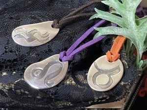 シリンジでクレイシルバーを押し出し、くねくね自由に線を描いてペンダントトップを作ってみませんか。アクセントに合成石を入れられます。
