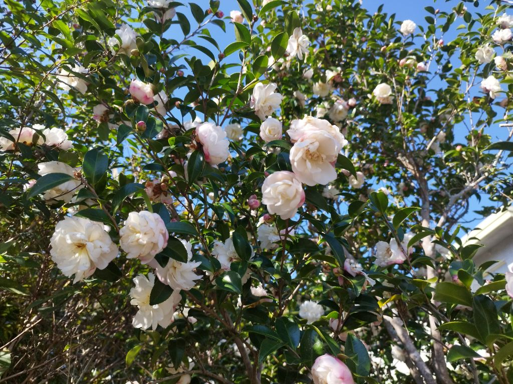 紅白の椿も咲きそろいました。今年は花の色が若干寂しいかなこれも天候のせい。