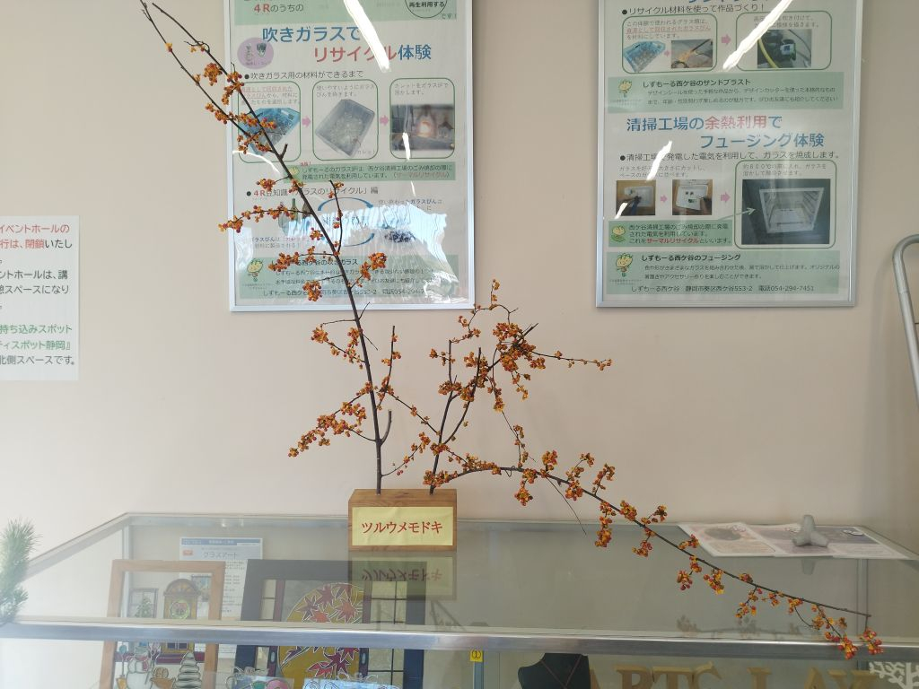 温泉利用のお客さんが持ってきてくれたツルウメモドキを飾ってみました。